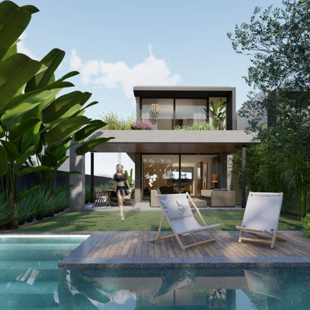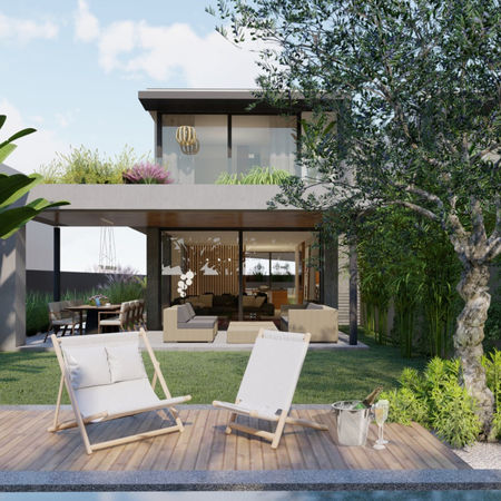 Estetik görünüşüyle dikkat çeken ve 615m2 arsa içinde 307,5m2 arsa payına sahip villaların toplam